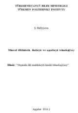 ESASY ORGANIKI DÄL SINTEZIŇ TEHNOLOGIÝASY